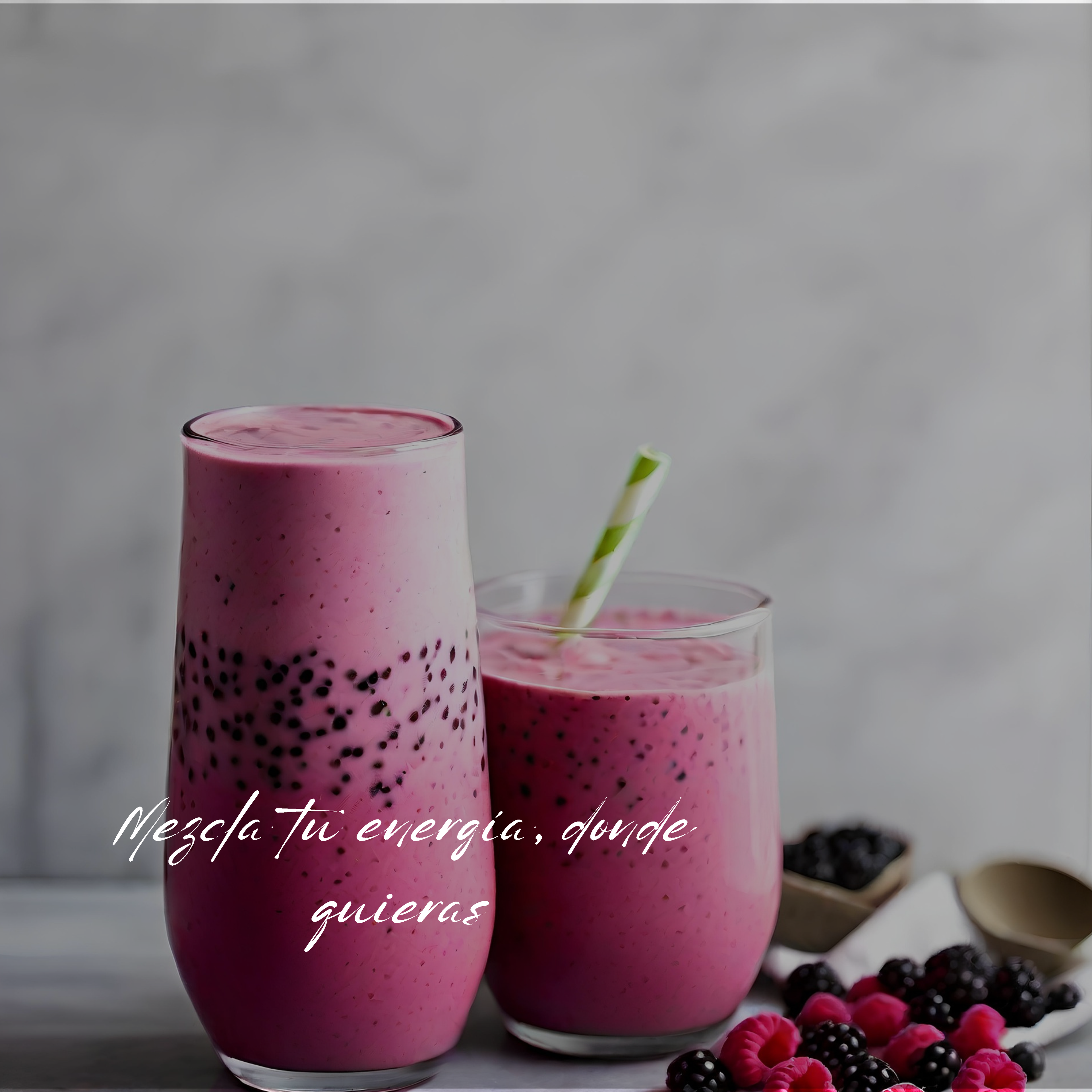 Corta tus frutas en trozos pequeños, introdúcelas en la licuadora, añade agua o leche, cierra la tapa y presiona el botón de encendido. Agita suavemente mientras mezcla para obtener una textura uniforme. En pocos segundos tendrás tu batido listo para disfrutar, sin ensuciar vasos ni complicarte.